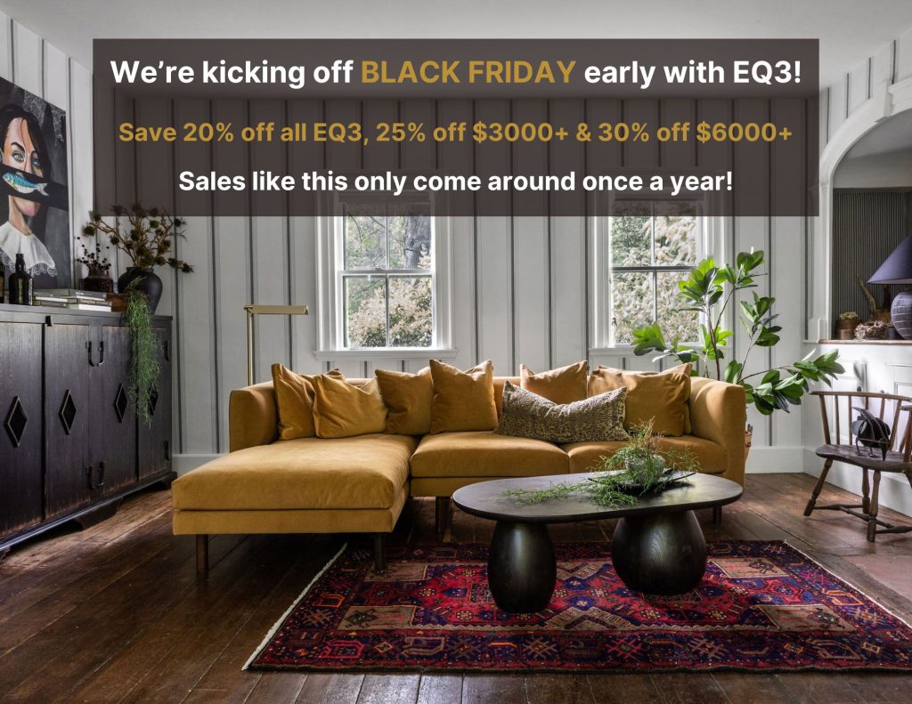 Starting today, enjoy 20% off all EQ3 orders, 25% off purchases over $3,000, and 30% off when you spend $6,000 or more! This sale includes everything from custom upholstery and accents to rugs, lighting, dining, bedroom, mirrors, office, and storage solutions. Whether you’ve had your eye on something or are just beginning your search, now…
