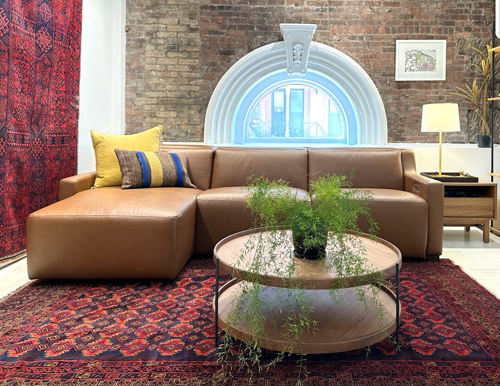 As shown: Laze 2-Piece Reclining Sofa + Chaise in Classic Sahara Leather, 112″ wide x 63″ deep, $9050. Get ready to be seriously considering swapping out your current sofa once you experience the latest addition to our showroom floor… This past April when Judith and Heather flew to North Carolina to attend the largest furniture…